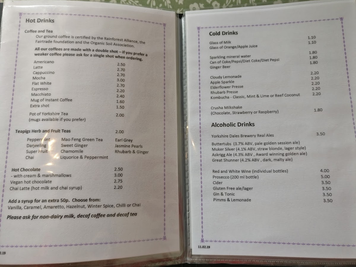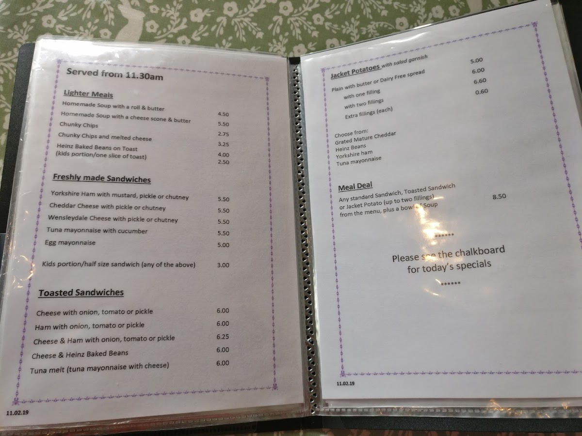 The Copper Kettle Reeth offers a simple, inviting café menu centered around comforting, classic choices that suit leisurely mornings and relaxed afternoons. Whether you’re stopping by for a fresh coffee with a slice of cake or settling in for a light lunch, the menu features familiar favourites made with care.